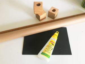 Schneide die Schablonen aus und klebe sie mit Flüssigkleber auf ein Klötzchen. Dann lässt du das ganze trocknen. Alles, was höher als das Klötzchen ist, wird später gedruckt. Du kannst beim Anmalen auch drübermalen, nur deine Moosgummischablone wird sichtbar!